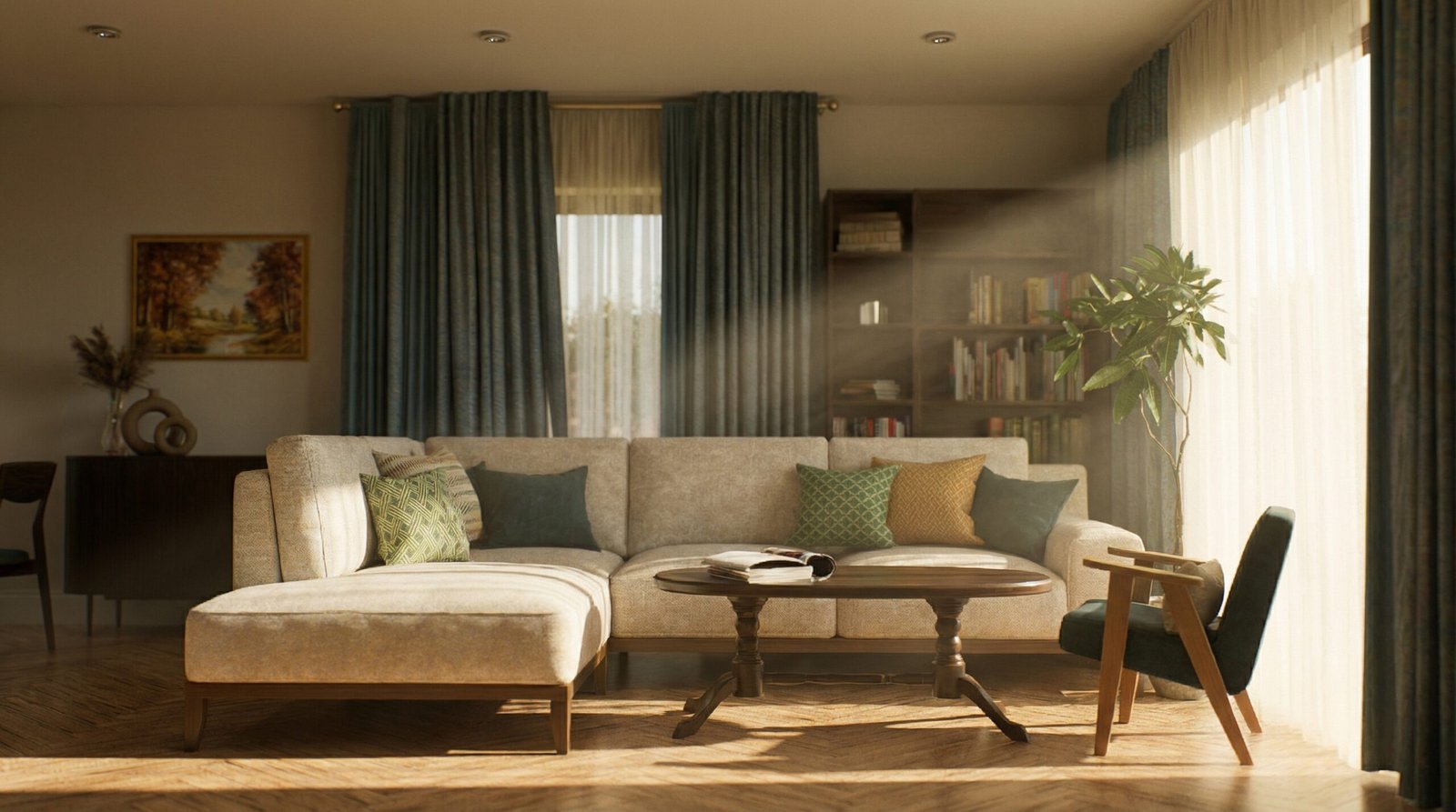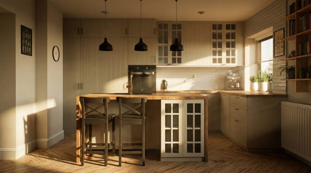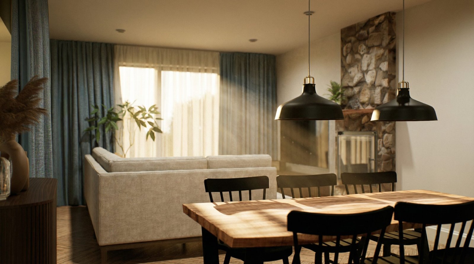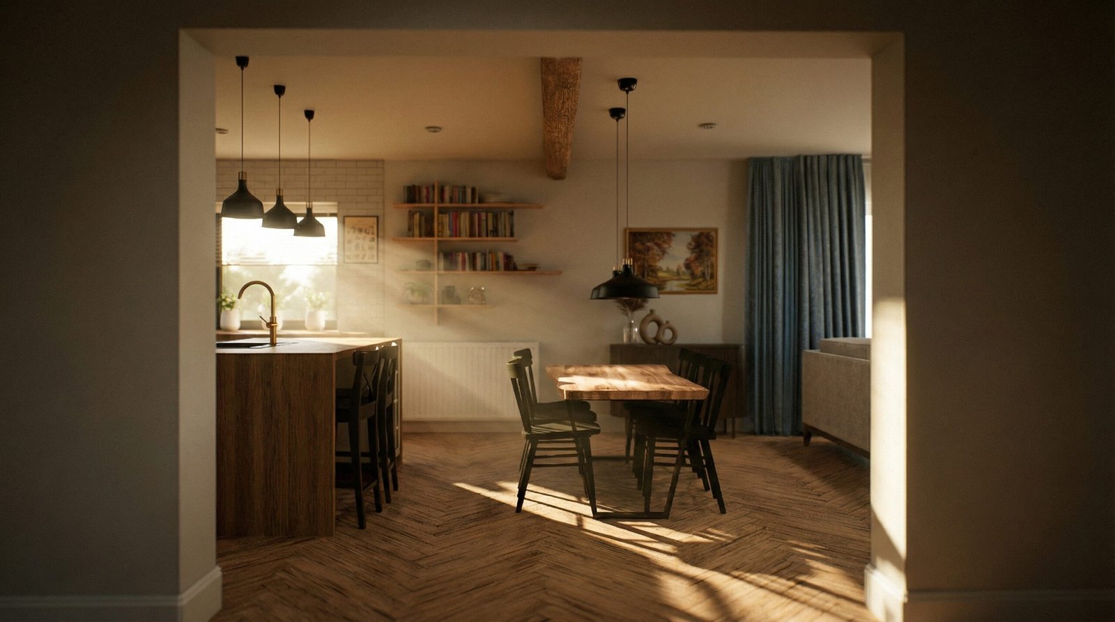 Przestrzeń, w której naturalne światło, ciepłe drewno i miękkie kolory tworzą atmosferę codziennego komfortu i ponadczasowej harmonii.